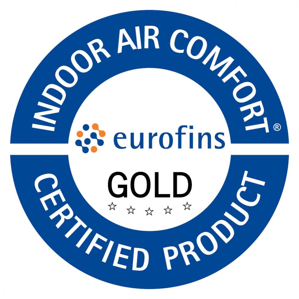 Certifikace Eurofins Indoor Air Comfort Gold potvrzuje, že výrobek splňuje nejpřísnější požadavky na emise těkavých organických látek (VOC) v Evropě. Výrobky s touto certifikací jsou z pohledu emisí těkavých organických látek uznávány jako nejlepší ve své třídě a jejich použití je často předepsané v udržitelných stavebních projektech. |